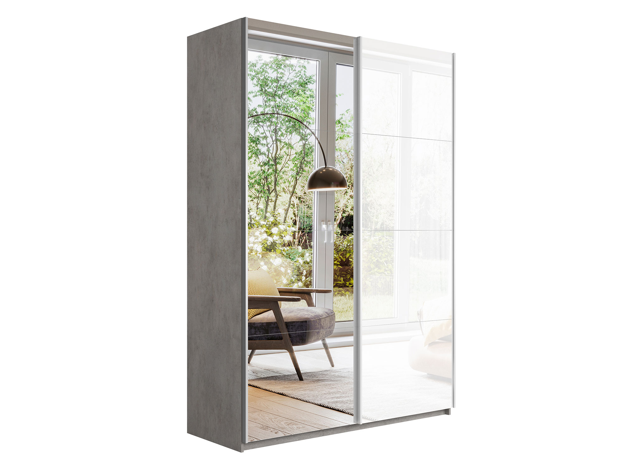 Шкаф-купе Прайм 2-х дверный 1400 Зеркало/Стекло Белое Бетон