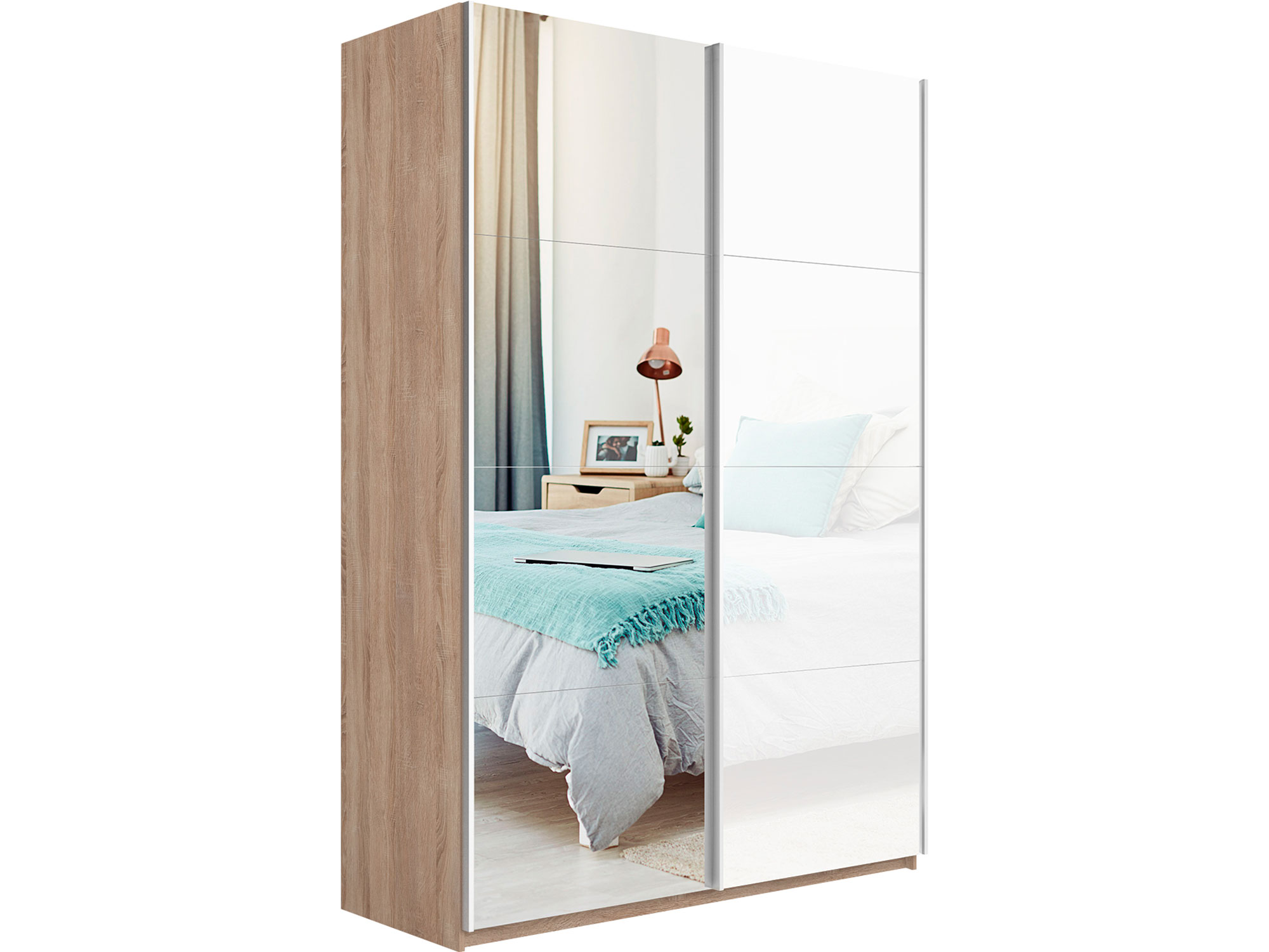 - Шкаф-купе Прайм 2-х дверный 1400 Зеркало/Стекло Белое Сонома