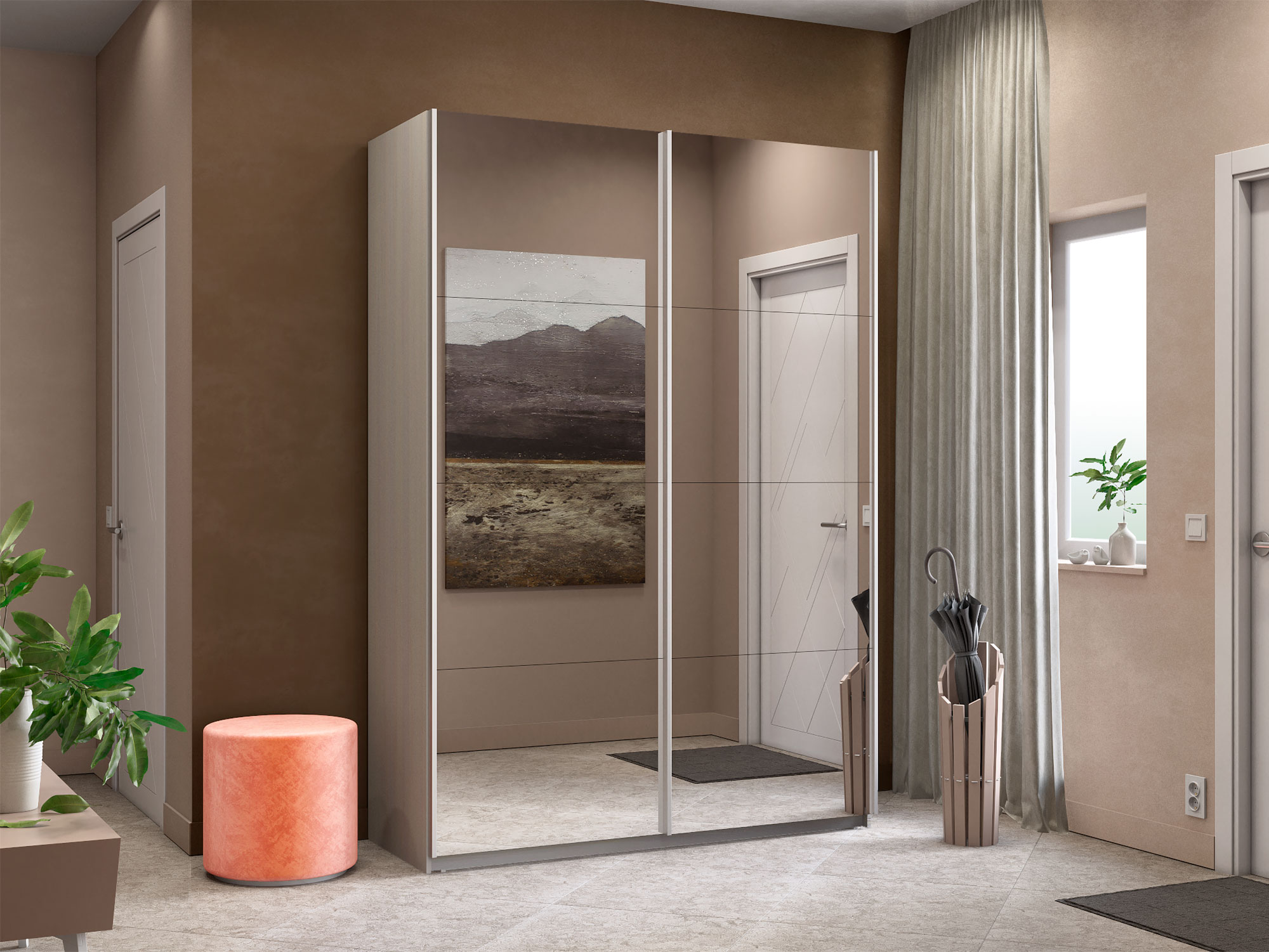 Шкаф-купе Прайм 2-х дверный 1600 два зеркала Ясень Анкор Светлый