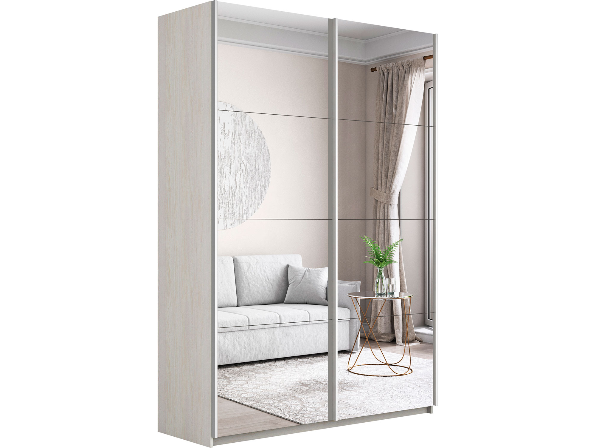 - Шкаф-купе Прайм 2-х дверный 1600 два зеркала Ясень Анкор Светлый