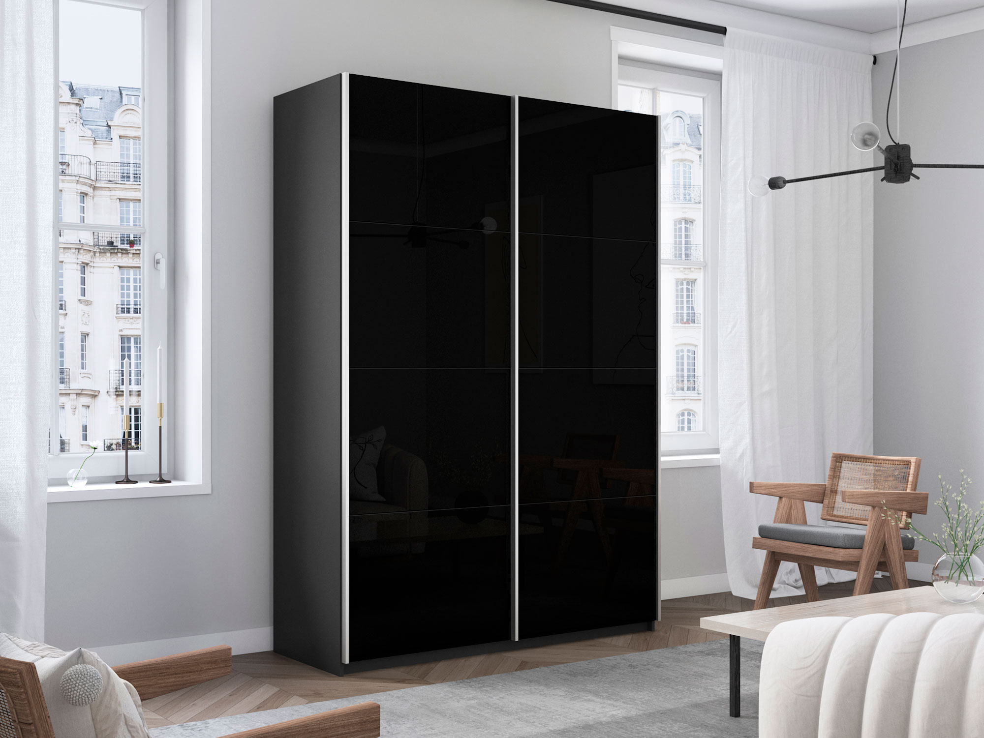 - Шкаф-купе Прайм 2-х дверный 1600 Стекло Черное Серый Диамант