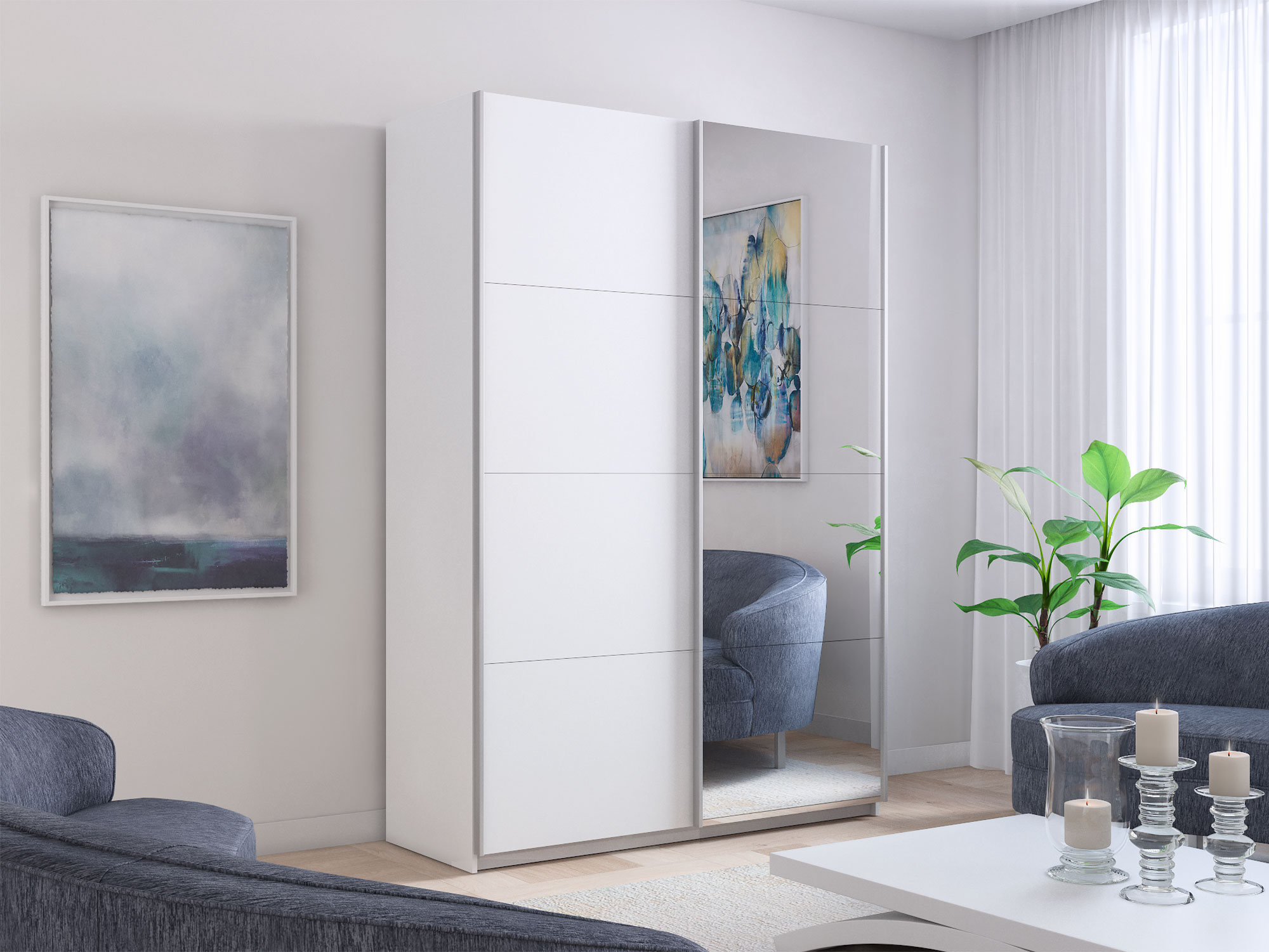- Шкаф-купе Прайм 2-х дверный 1600 Зеркало/ДСП Белый Снег