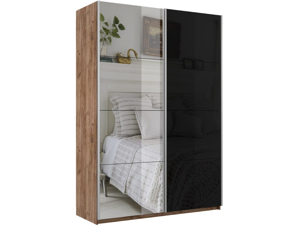 - Шкаф-купе Прайм 2-х дверный 1600 Зеркало/Стекло Черное Крафт табачный