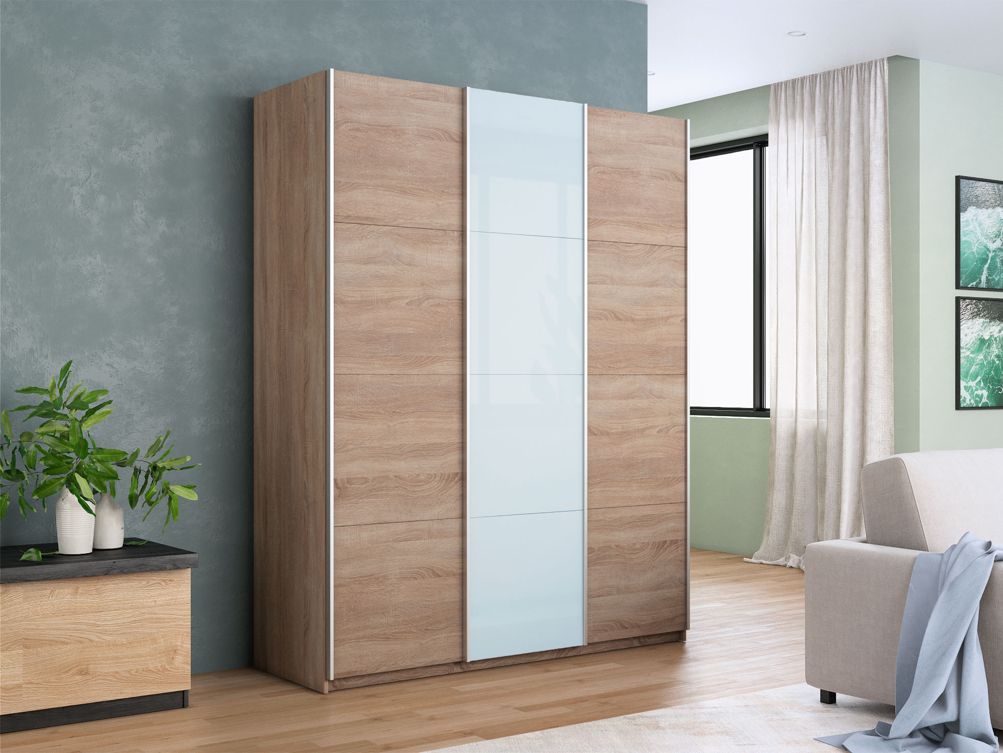 Шкаф-купе Прайм 3-х дверный 1800 ДСП/Стекло Белое/ДСП Сонома