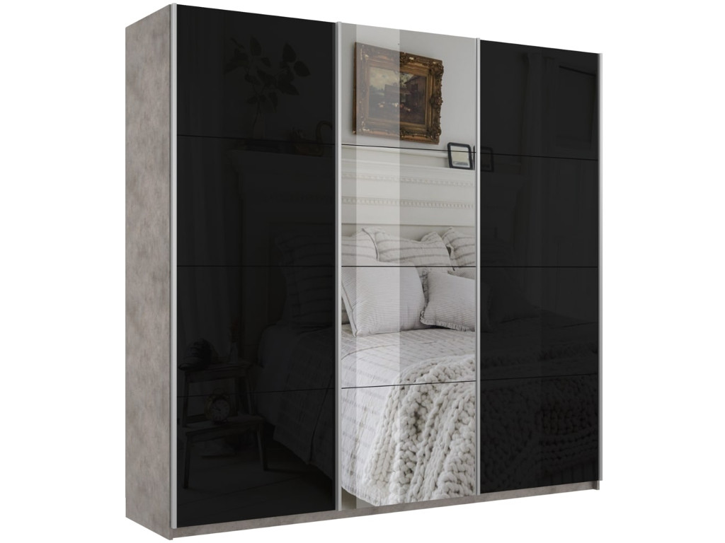 - Шкаф-купе Прайм 3-х дверный 1800 два Стекла Черные/Зеркало Бетон
