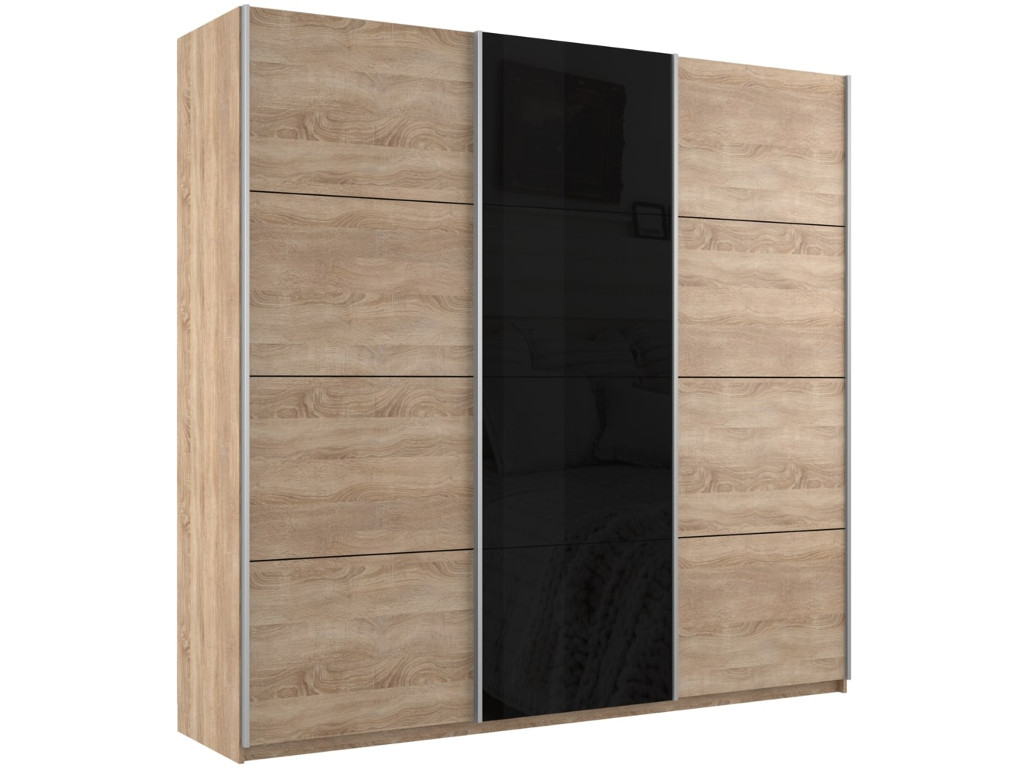 - Шкаф-купе Прайм 3-х дверный 2100 ДСП/Стекло Черное/ДСП Сонома