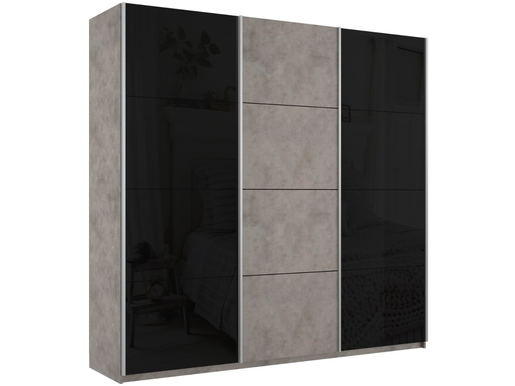 - Шкаф-купе Прайм 3-х дверный 2100 два Стекла Черные/ДСП Бетон