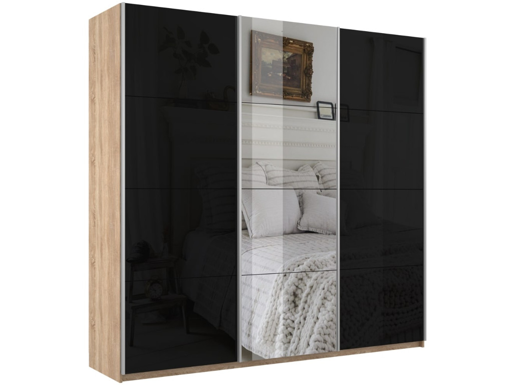 Шкаф-купе Прайм 3-х дверный 2100 два Стекла Черные/Зеркало Сонома