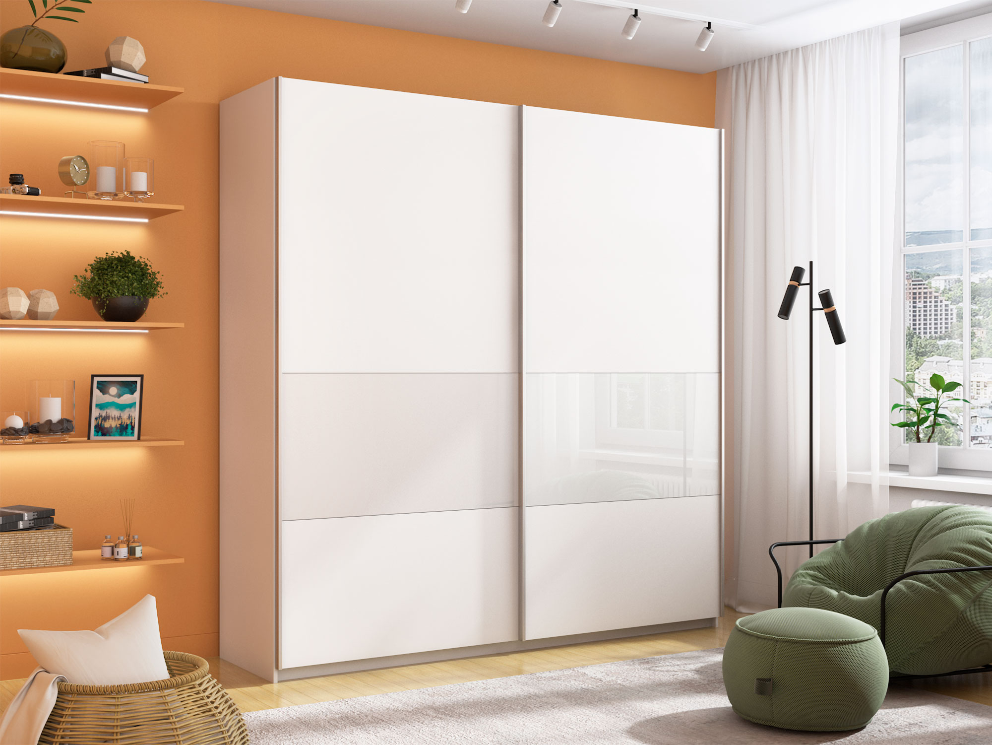 Шкаф-купе Прайм Широкий 2-х дверный ДСП/вставки Стекло Белое Белый Снег