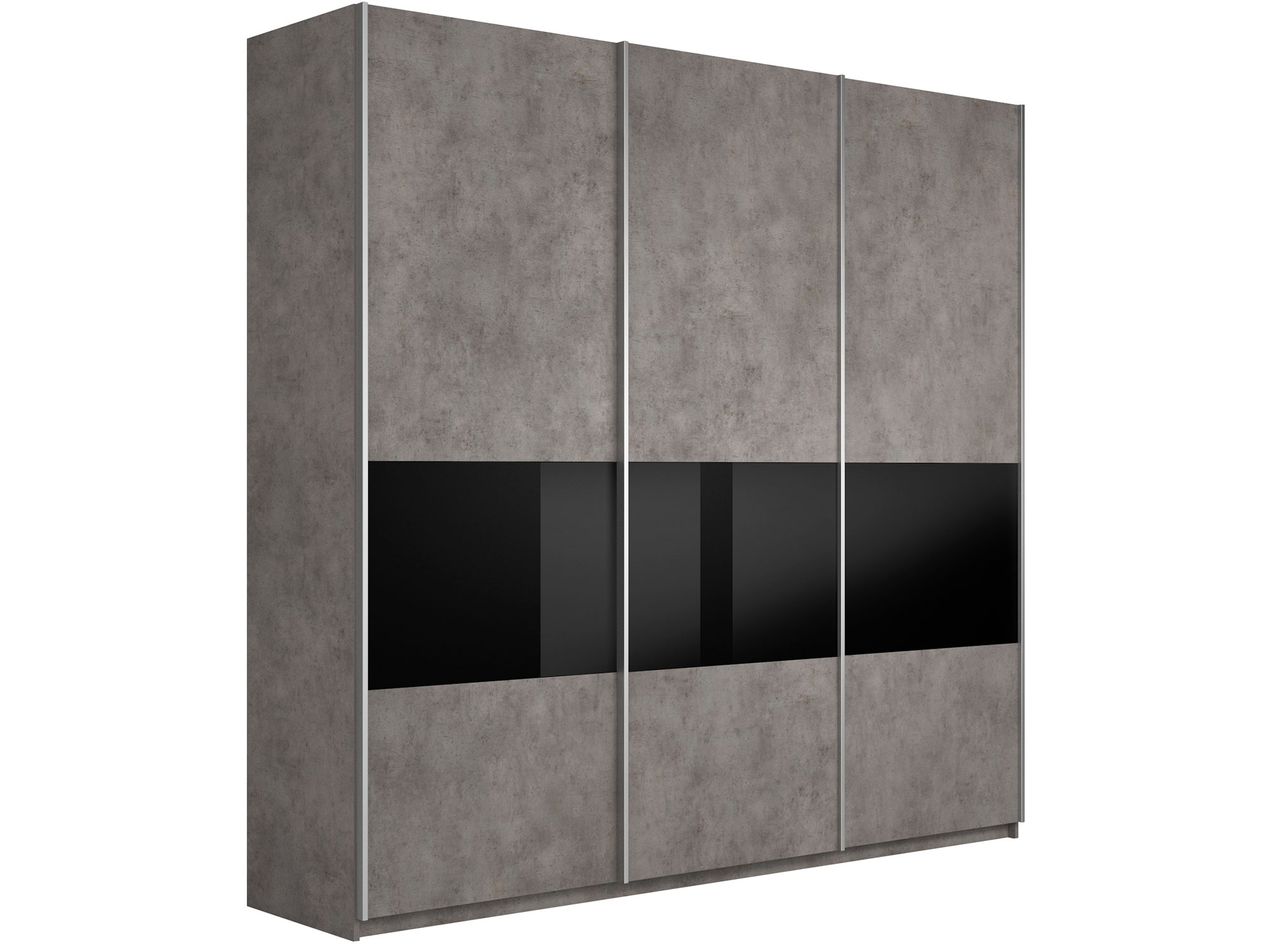 Шкаф-купе Прайм Широкий 3-х дверный ДСП/вставки Стекло Черное Бетон