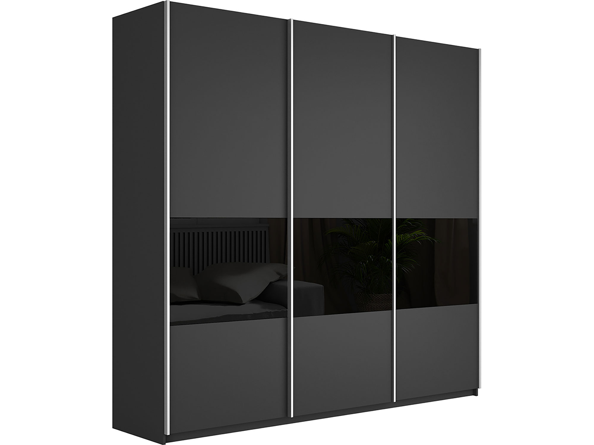 - Шкаф-купе Прайм Широкий 3-х дверный ДСП/вставки Стекло Черное Серый Диамант