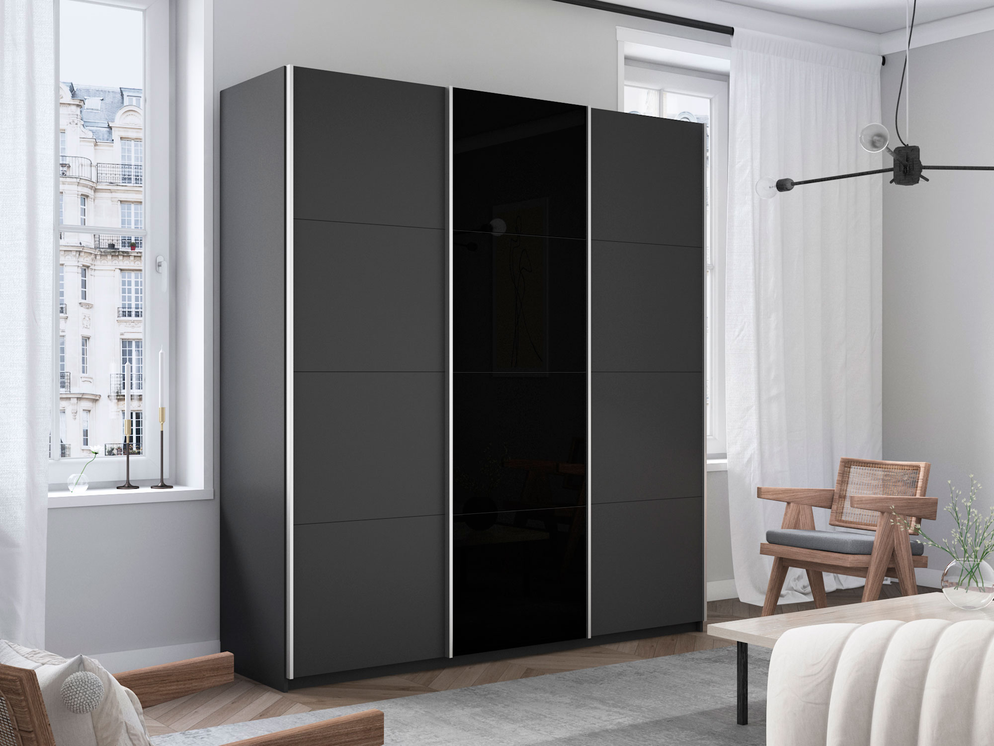- Шкаф-купе Прайм Широкий 3-х дверный два ДСП/Стекло Черное Серый Диамант