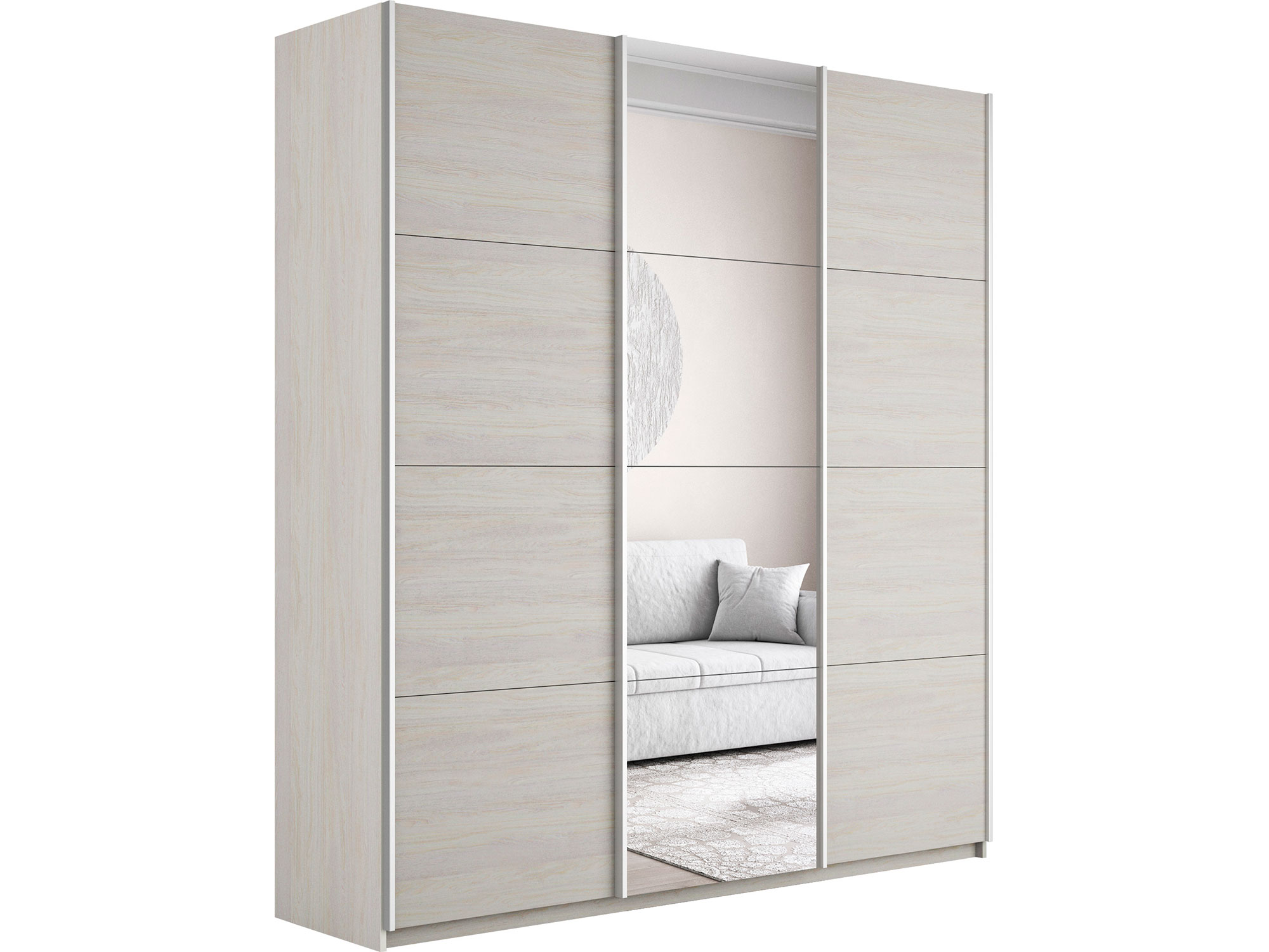 - Шкаф-купе Прайм Широкий 3-х дверный два ДСП/Зеркало Ясень Анкор Светлый