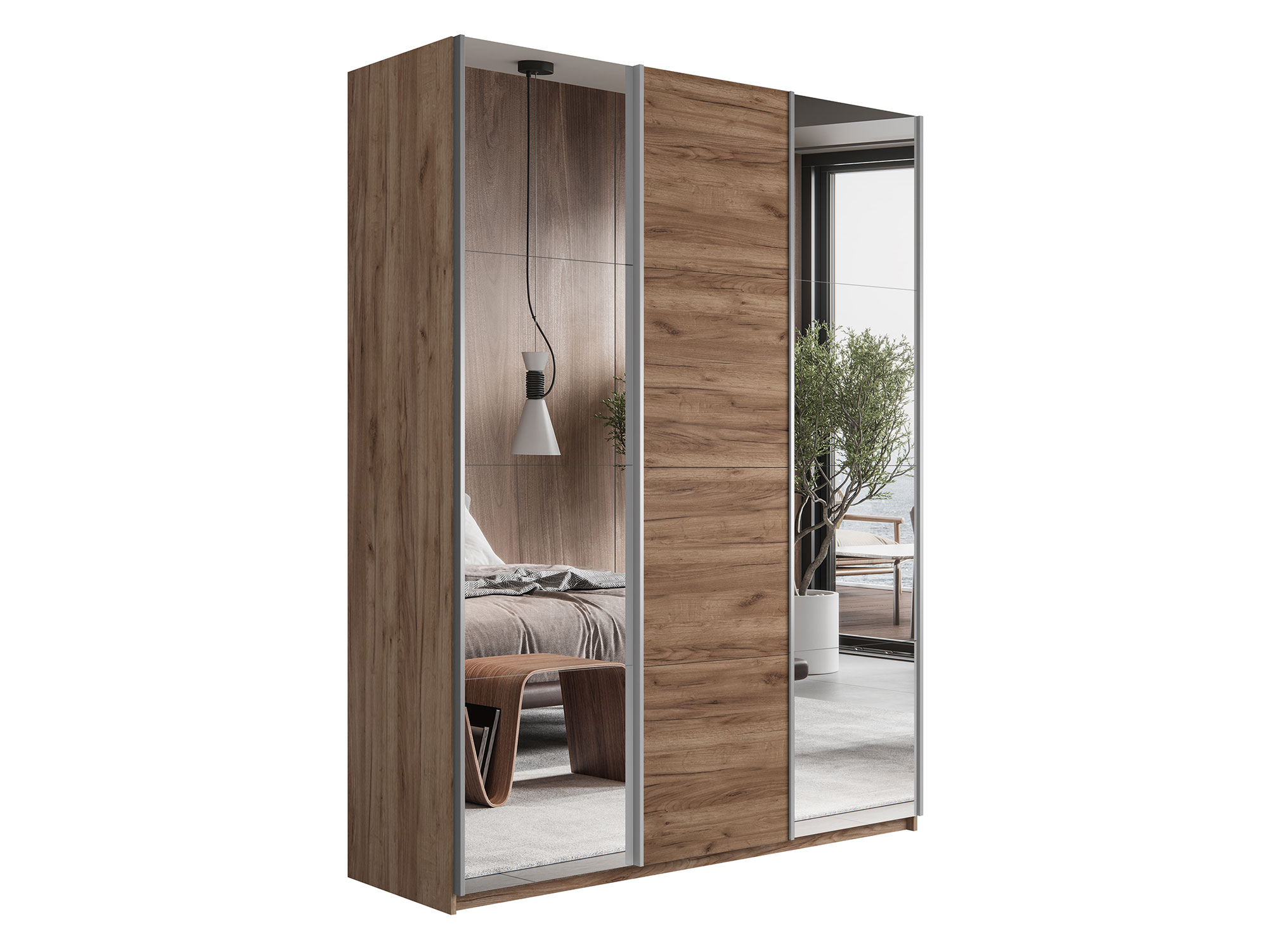 - Шкаф-купе Прайм Широкий 3-х дверный два зеркала/ДСП Крафт табачный
