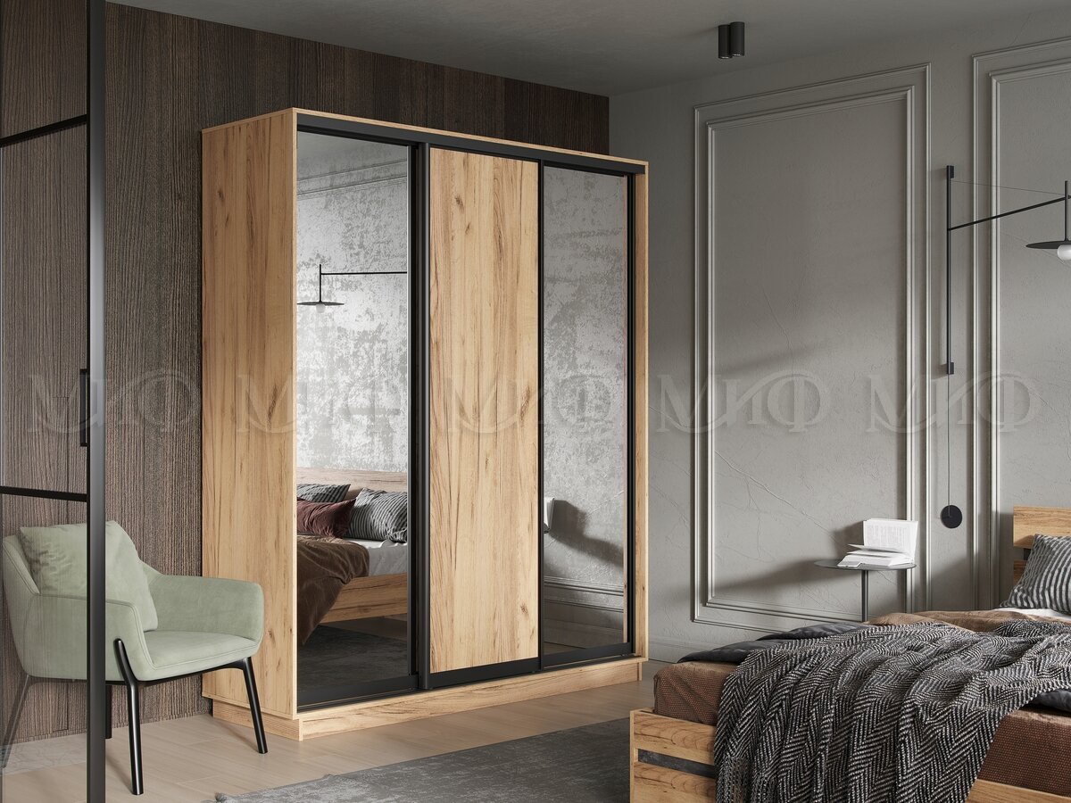- Шкаф-купе Тринити NEW (1800) два зеркала Дуб Крафт