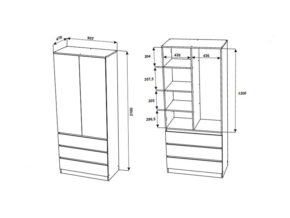 - Шкаф Мори МШ900.2 с тремя ящиками белый