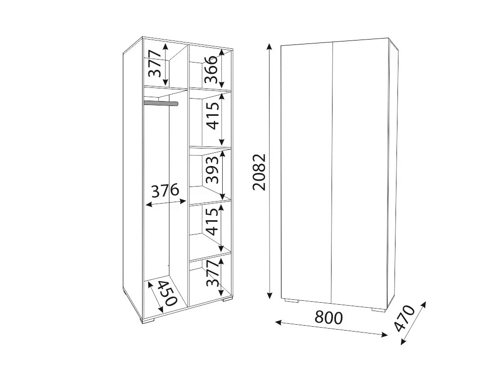 - Шкаф Осло 2 двери штанга/полки М03 ручка торцевая Белый