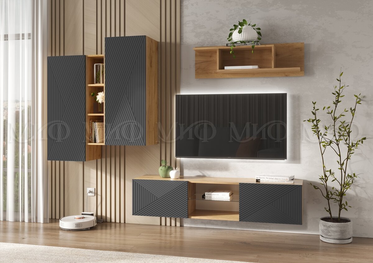 - Шкаф подвесной комбинированный Флэш Браш Графит, Дуб Крафт
