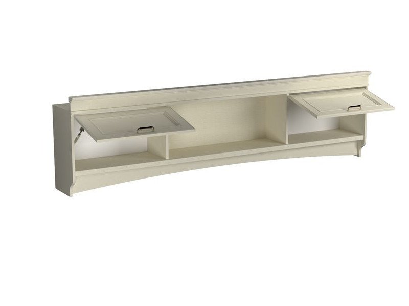 Полка крепится на стену, в случае расположения между шкафами дополнительно рекомендуем прикрепить к бокам шкафа.