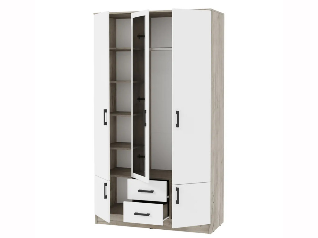 Шкаф Ронда ШК-3 с зеркалом дуб крафт серый, белый
