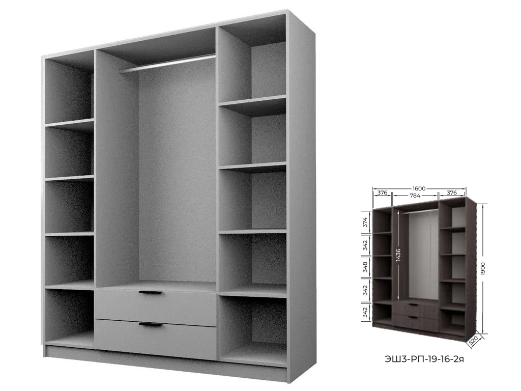 Шкаф с 2 ящиками Экон ЭШ3-РП-19-16-2я