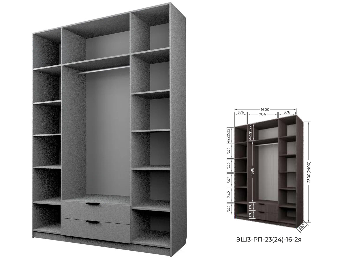 Комплект: ЭШ3-РП-23-16-2я, Шкаф с 2 ящиками + два ЗС-23-2я,Зеркало для шкафов ЭШ 2300 мм + два ЗС-23, Зеркало для шкафов ЭШ 2300 мм