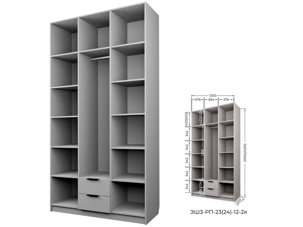 Комплект: ЭШ3-РП-24-12-2я, Шкаф с 2 ящиками + ЗС-24-2я,Зеркало для шкафов ЭШ 2400 мм