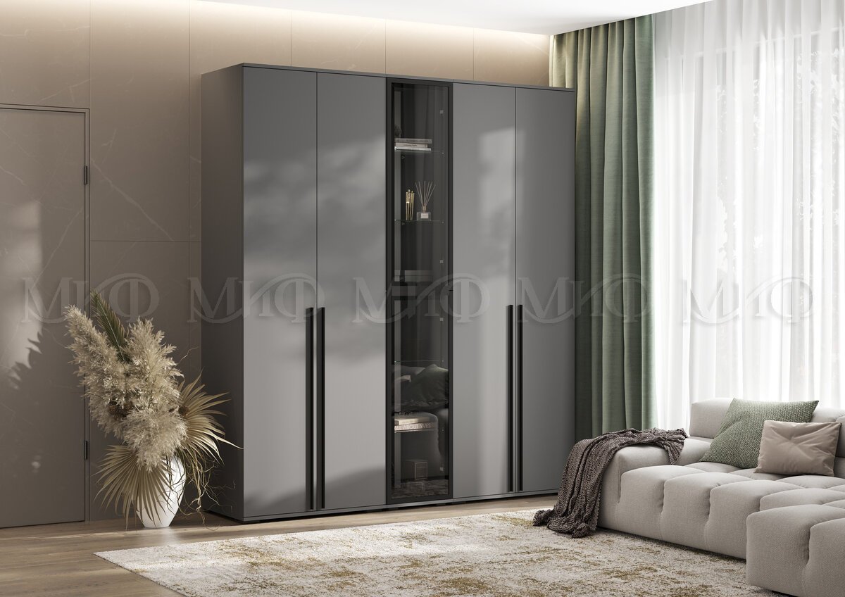 - Шкаф с витриной Норд Графит