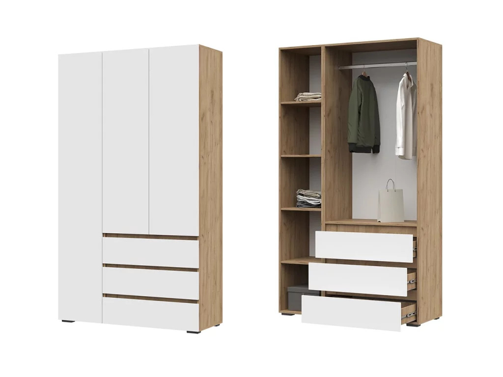 Шкаф с ящиками Хелен 3-х створчатый ШК 06 Дуб крафт золотой-Белый шагрень