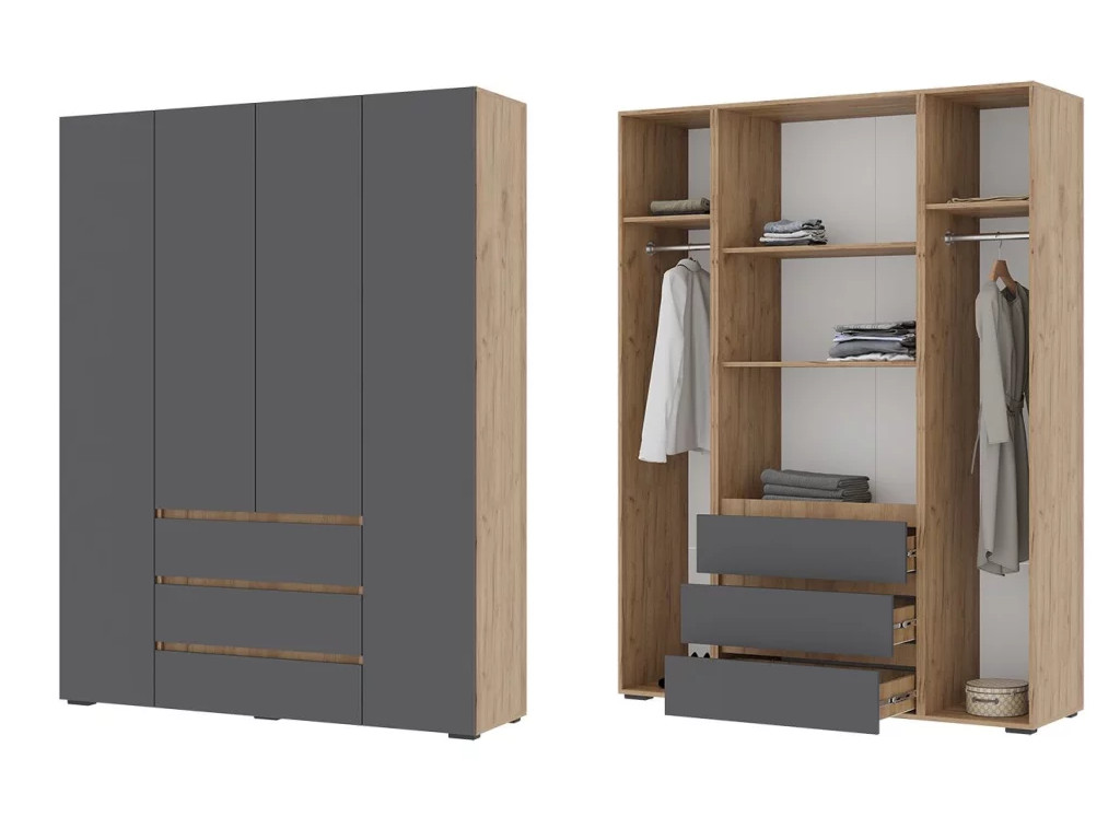 - Шкаф с ящиками Хелен 4-х створчатый ШК 05 Дуб крафт золотой-Серый графит