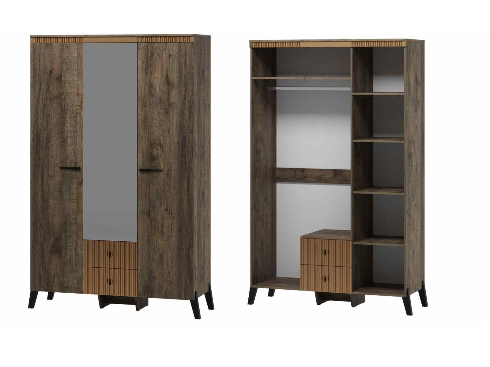 Шкаф трехдверный с ножками Ольга 3 дуб коми