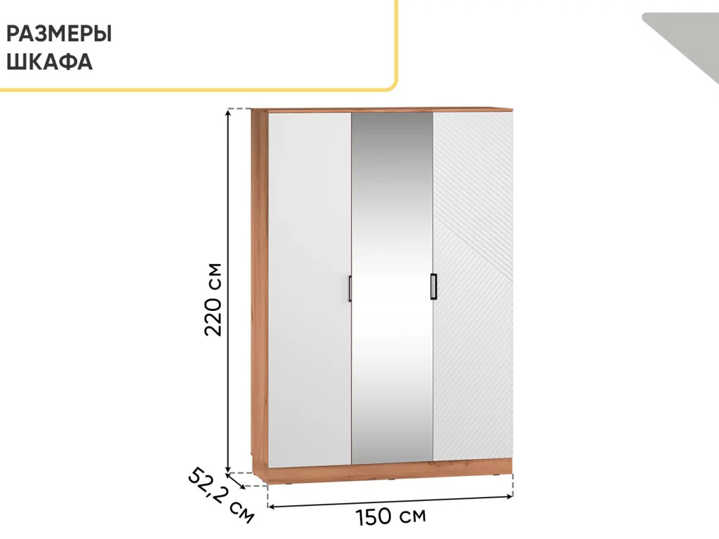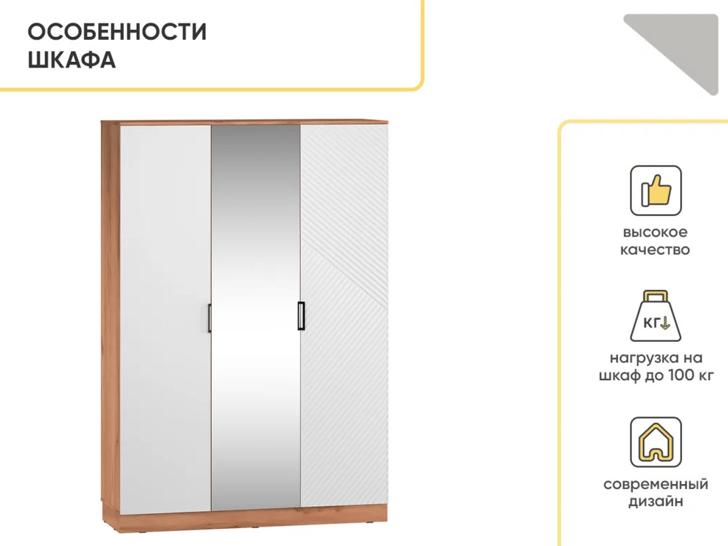 - Шкаф трехстворчатый Леон Дуб бунратти/Белый