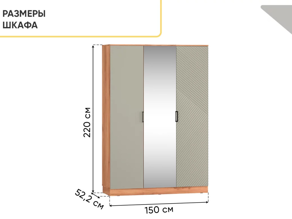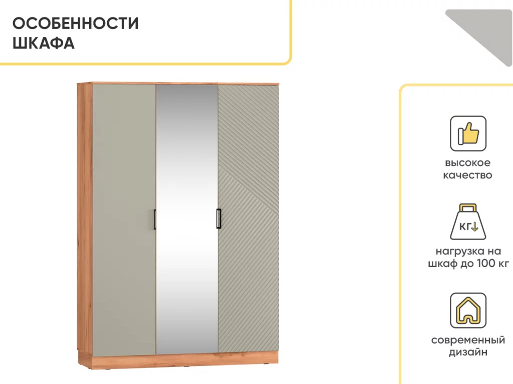 - Шкаф трехстворчатый Леон Софт грин