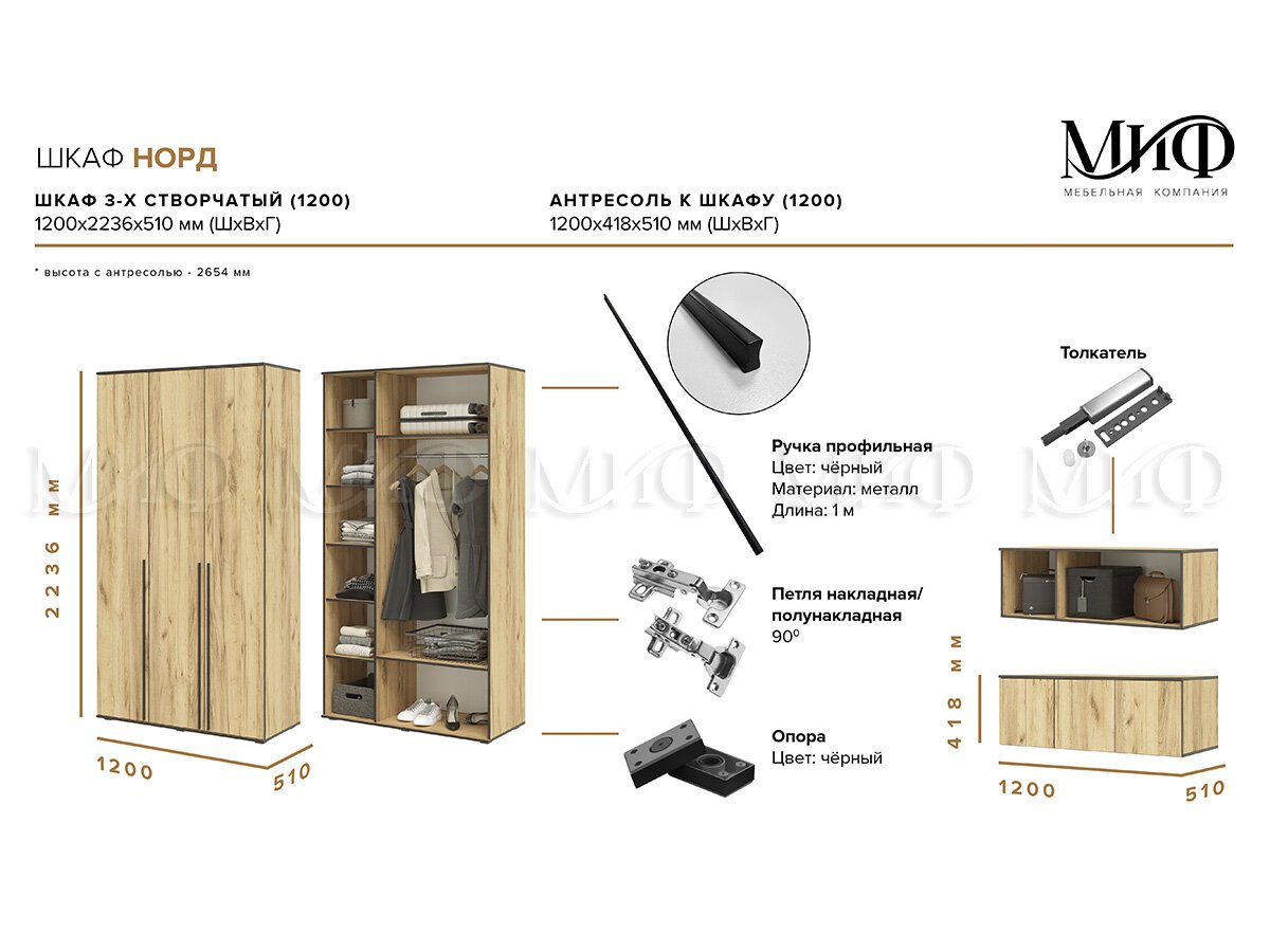 Размеры (Ш*В*Г): 1200*2654*510 мм