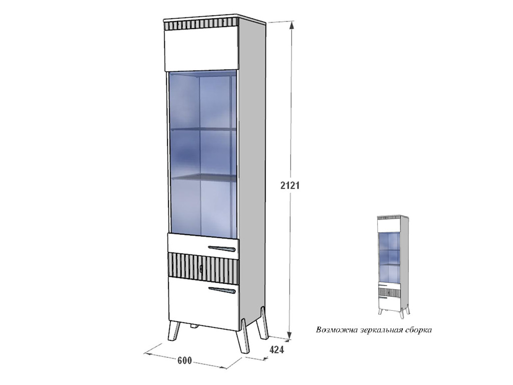 - Шкаф витрина пенал с ножками Ольга 3 дуб коми