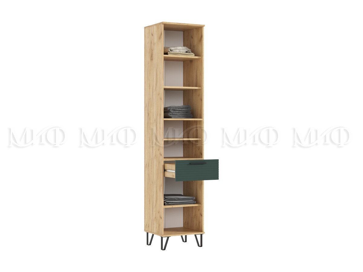 - Пенал открытый в прихожую Флэш Браш Мени Грин, Дуб Крафт
