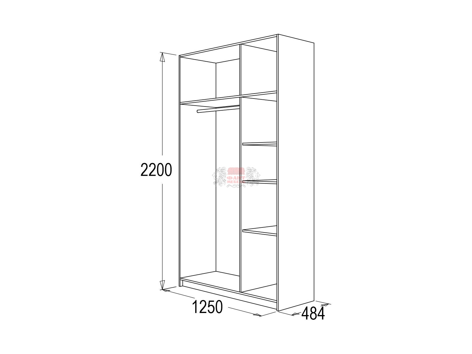 габариты (ВхШхГ): 2200x1250х484 мм
