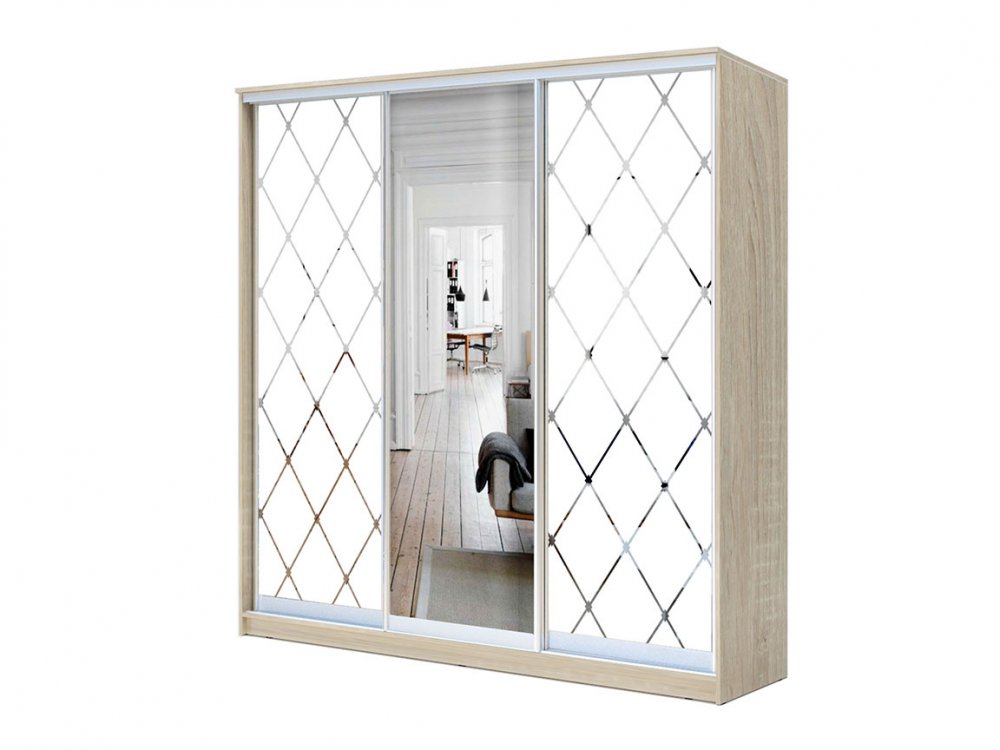- 1 дверь Зеркало + 2 двери Зеркало с пескоструйной обработкой