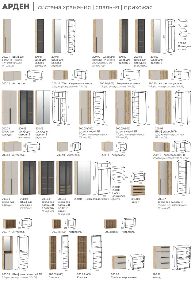 НМ 200.03 Шкаф для одежды (зеркало) + НМ 200.12 Антресоль